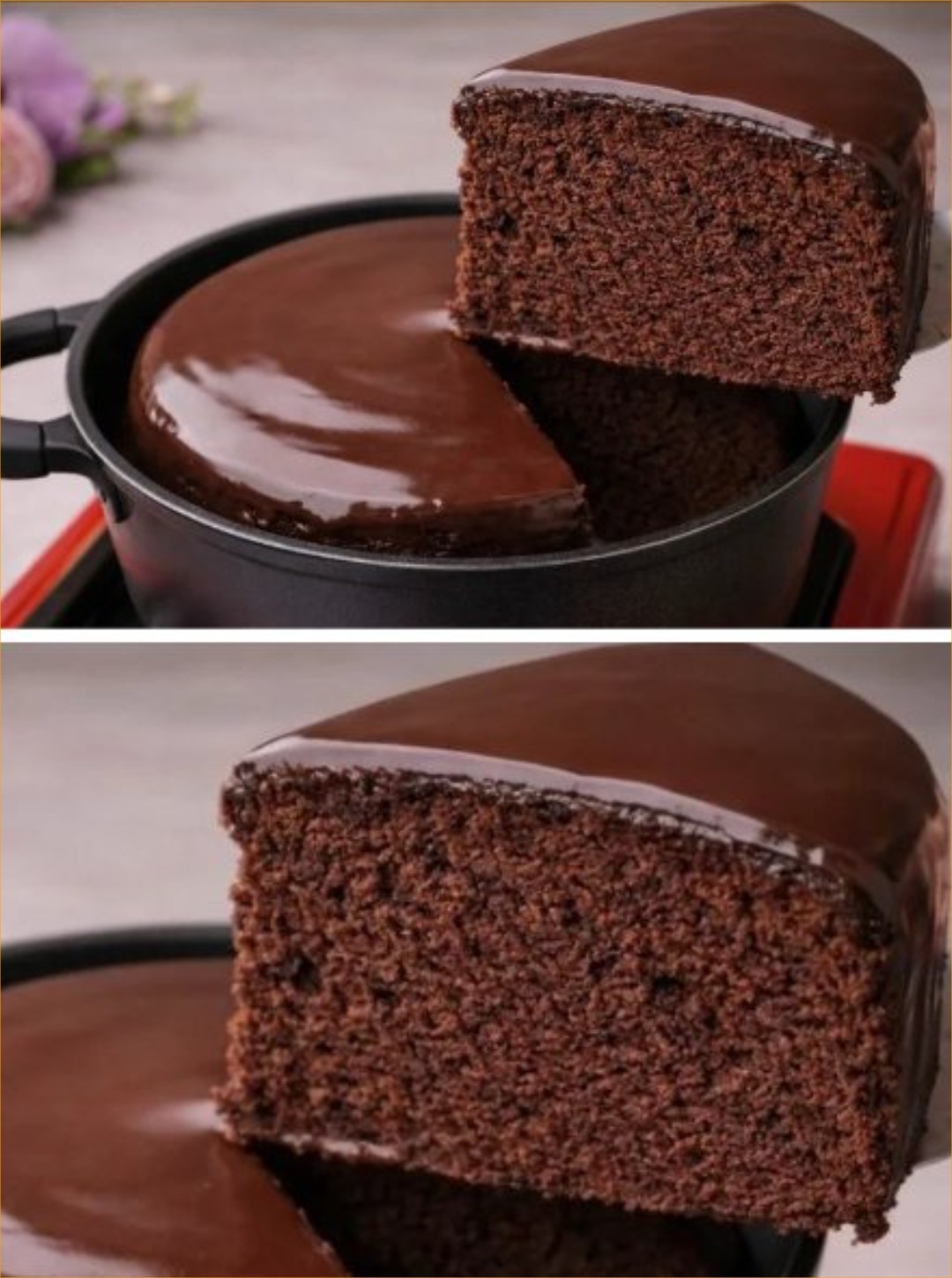 - Remove from heat and let it cool completely in the pot. Once cool, unmold the cake and drizzle the reserved chocolate sauce on top before serving.